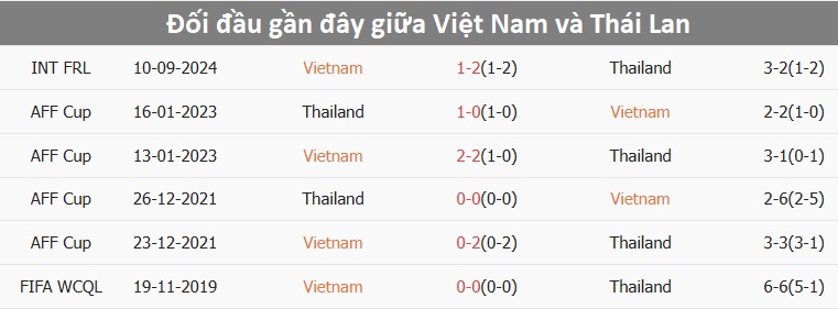 Phong độ, lịch sử đối đầu Việt Nam vs Thái Lan