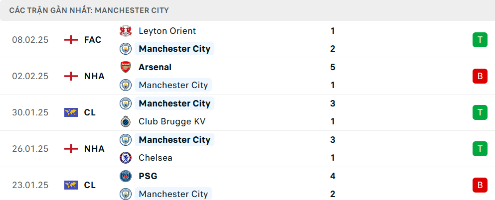 - Man City thắng 7 trong 10 trận gần nhất trên mọi đấu trường.