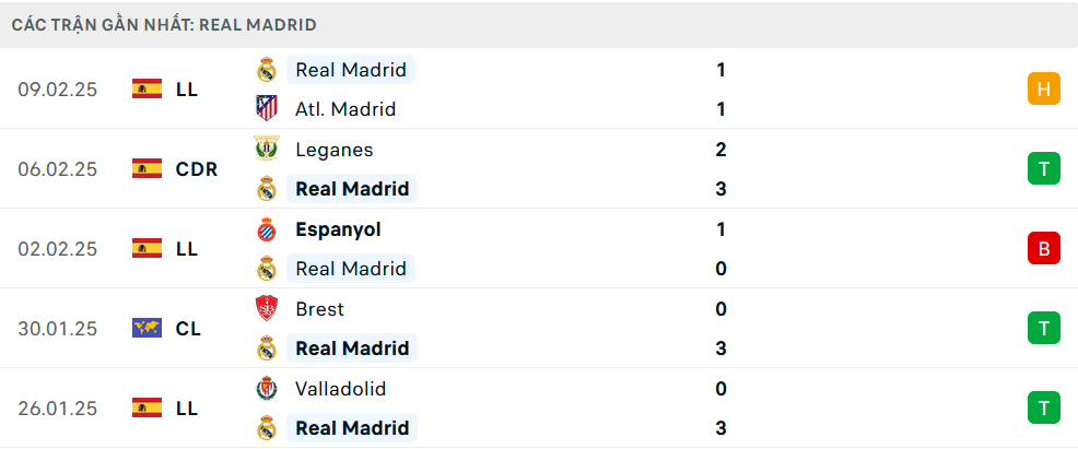 - Real Madrid thắng 3 trận gần nhất ở Champions League.