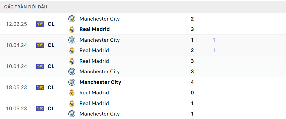 Phong độ và lịch sử đối đầu Real Madrid vs Man City