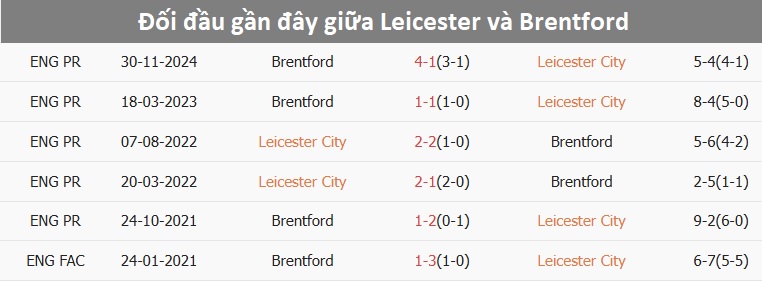 - Leicester bất bại trong 4 trận gần nhất trước Brentford ở mọi đấu trường.
