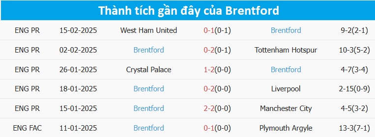 - Brentford thắng 3 trận sân khách gần nhất ở Ngoại hạng Anh.