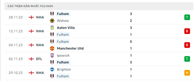 - Fulham chỉ thua 1 trận trong 7 trận gần nhất ở mọi giải đấu.