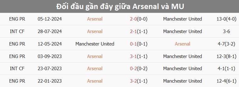 - Arsenal đã thắng 5 trận sân nhà gần nhất trước MU trên mọi đấu trường.