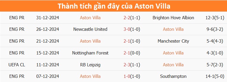 - Thời gian: 22h00 ngày 04/01/2025 | Vòng 20 – Premier League | SVĐ: Villa Park