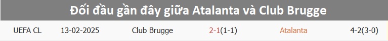 Lịch sử đối đầu Atalanta vs Club Brugge
