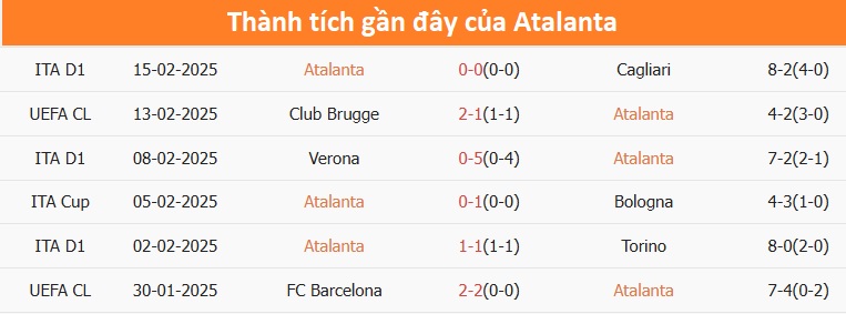 • Atalanta: Sead Kolašinac (chấn thương đùi) và Daniel Maldini (chấn thương háng) đã vắng mặt trong ba trận đấu gần đây nên sẽ tiếp tục ngồi ngoài ở trận này. Ademola Lookman không thi đấu kể từ cuối tháng 1 do chấn thương đầu gối.