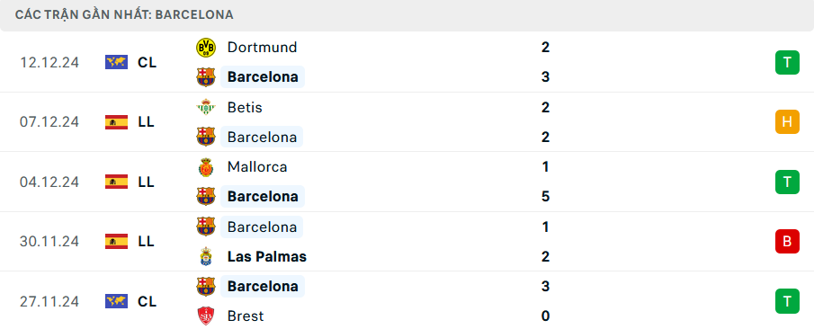 Phong độ Barcelona 5 trận gần nhất