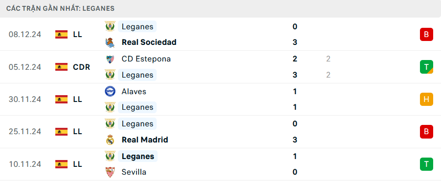 Phong độ Leganes 5 trận gần nhất