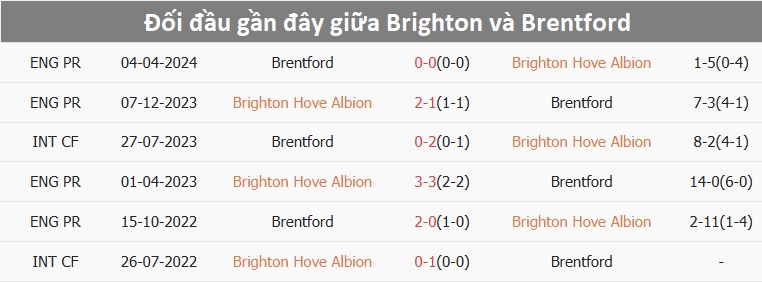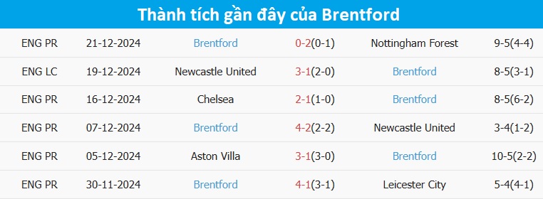 Brentford đang xếp sau Brighton khi tạm thời nằm ở vị trí 12 với 23 điểm. Trong 5 trận đấu gần đây, đội khách chơi khá tệ khi đã để thua tới 4 trận và để thủng lưới cả 5 trận đấu đó.