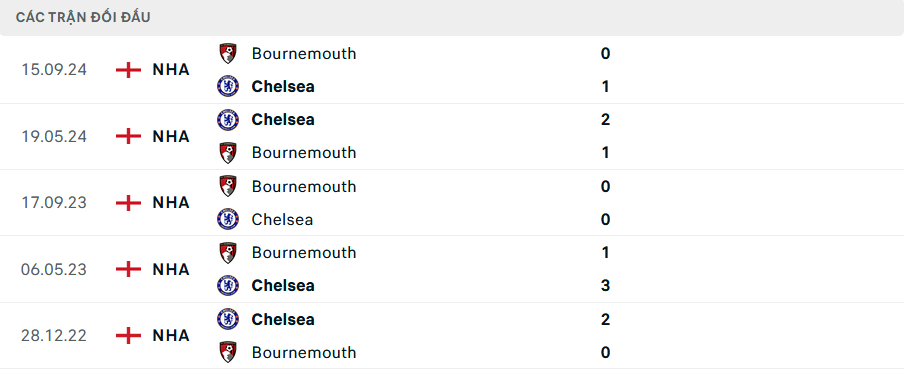 Lịch sử đối đầu Chelsea vs Bournemouth