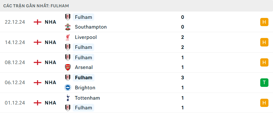 - Fulham bất bại trong 5 trận gần nhất ở Premier League, nhưng hòa 4 trong số đó.