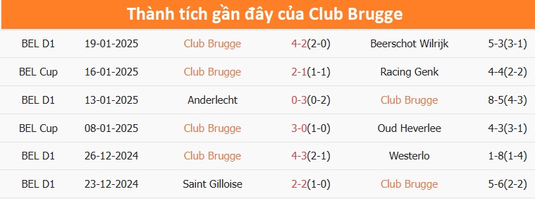 Club Brugge đang sở hữu phong độ hủy diệt trong thời gian gần đây. Cụ thể, thầy trò HLV Nicky Hayen đã bất bại 18 trận đấu gần nhất trên mọi đấu trường, trong đó giành tới 15 chiến thắng. Không chỉ đang đua tranh quyết liệt với Genk ở giải VĐQG Bỉ, Club Brugge cũng hoàn toàn có cơ hội để đi tiếp vào vòng knock-out cúp C1 mùa này khi đang đứng ở vị trí thứ 19 với 10 điểm sau 6 lượt trận.