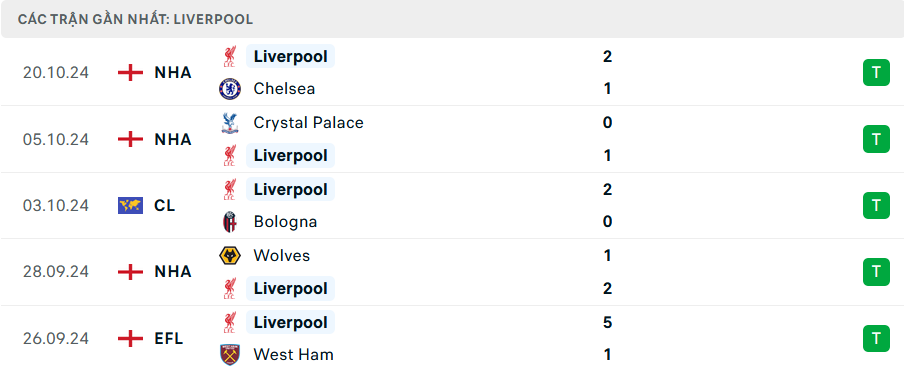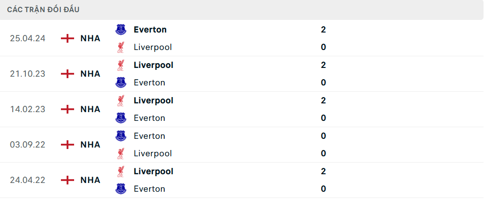 - Có ít hơn 2.5 bàn ở 5 trận gần nhất giữa Everton và Liverpool trên mọi đấu trường.