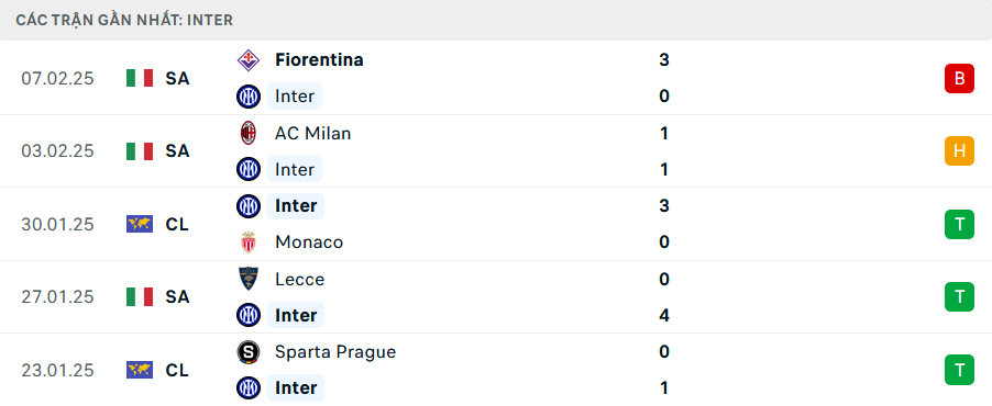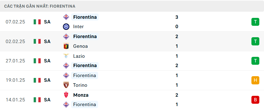 Phong độ và lịch sử đối đầu Inter Milan vs Fiorentina