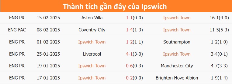 Ipswich là đội bóng tân binh của giải Ngoại hạng Anh mùa bóng năm nay và mục tiêu họ hướng đến không gì khác ngoài việc trụ hạng. Cho đến lúc này thì họ vẫn đang phải gồng mình chiến đấu để hiện thực hóa mong muốn. Sau 25 lượt trận, Ipswich đem về vỏn vẹn 3 chiến thắng, 8 trận hòa và thua 14 trận. Vẫn đang đứng trong nhóm cầm đèn đỏ, sẽ còn rất nhiều việc phải làm nếu như thầy trò HLV Kieran McKenna muốn bứt phá vươn lên khu vực an toàn.