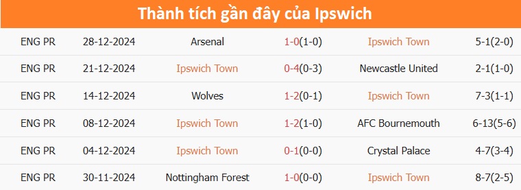 - Thời gian: 02h45 ngày 31/12/2024 | Vòng 19 – Premier League 2024/25 | SVĐ: Portman Road