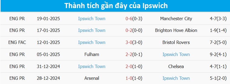 Phía bên kia chiến tuyến, Ipswich Town vẫn đang gặp khó trong cuộc đua trụ hạng mùa này. Sau 22 vòng đấu, đoàn quân của HLV McKenna mới giành được 16 điểm và hiện họ đang xếp ở vị trí thứ 18 trên BXH. Mới đây nhất, đội chủ nhà đã để thua tan nát với tỷ số 0-6 trước Man City trên sân nhà và trận thua đậm đó sẽ khiến tinh thần của Ipswich Town bị dao động dù họ cũng chỉ đang kém Wolves xếp ngay trên về mặt hiệu số.