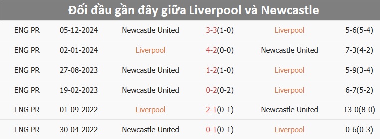 Phong độ và lịch sử đối đầu Liverpool vs Newcastle