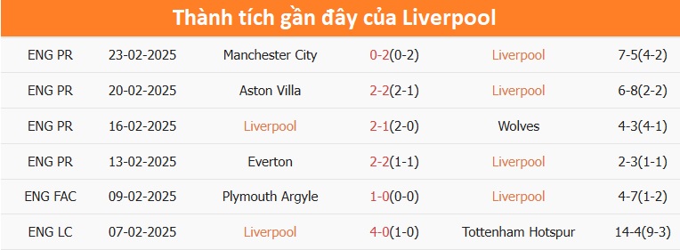 - Liverpool bất bại trong 17 trận gần nhất trên sân nhà ở mọi đấu trường, ghi ít nhất 2 bàn/trận trong chuỗi trận đó.