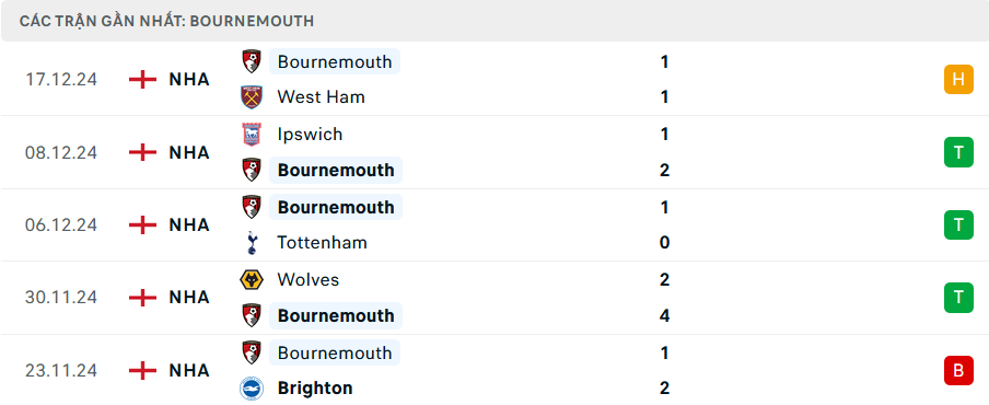 Bên phía đối diện, Bournemouth đang chơi rất tiến bộ mùa này. Trải qua 16 lượt trận, các học trò của HLV Adoni Iraola giành 7 thắng lợi, hòa 4 và để thua 5 trận. Có được 25 điểm, The Cherries đang đứng ở vị trí thứ 6 trên BXH. Đang có phong độ ổn định khi thắng 3 và hòa 1 ở 4 trận gần nhất, Bournemouth rất tự tin dù phải hành quân tới Old Trafford vào cuối tuần này.