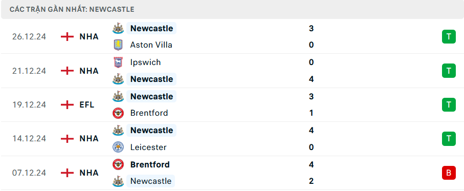 - Newcastle thắng 3 trận liên tiếp ở Premier League.