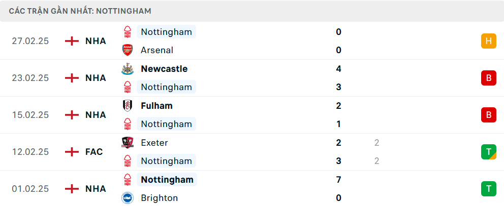 Phong độ Nottingham 5 trận gần nhất