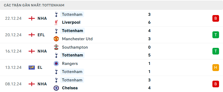 Tại Premier League, Tottenham cũng chỉ đang đứng ở vị trí thứ 11 trên bảng xếp hạng với 23 điểm sau 17 trận đã đấu. Hơn nữa, tâm lý của các cầu thủ Tottenham đang thực sự hoảng loạn sau thất bại với tỉ số 3-6 trước Liverpool ngay trên sân nhà. Phải hành quân đến City Ground với việc quá nhiều những trụ cột chấn thương, không dễ để Tottenham có được 3 điểm trọn vẹn ở trận đấu này.