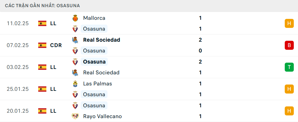 • Osasuna bất bại trong 4 trận gần nhất ở La Liga.
