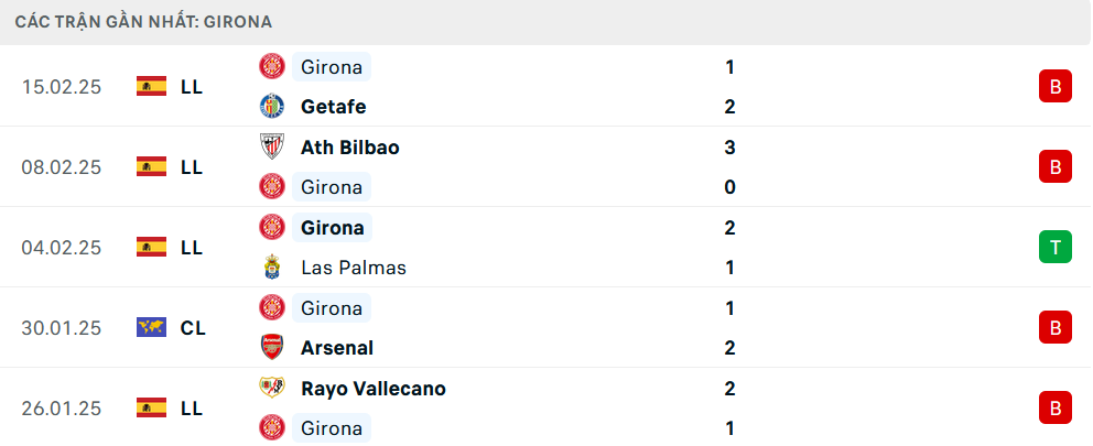 Phong độ Girona 5 trận gần nhất