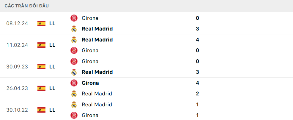 Lịch sử đối đầu Real Madrid vs Girona
