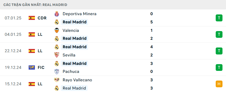 Sau cuộc lội ngược dòng tương đối vất vả trước Valencia ở trận đấu đầu tiên của năm 2025 với điểm nhấn là tấm thẻ đỏ của Vinicius và phong độ chói sáng của Bellingham, Real Madrid đã có thắng lợi dễ dàng với tỷ số 5-0 trước Deportiva Minera dù chỉ tung ra sân đội hình 2.