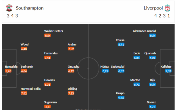 Đội hình dự kiến Southampton vs Liverpool