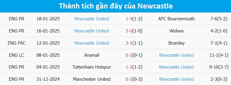 Phía bên kia chiến tuyến, Newcastle vừa thua tan nát 1-4 trên sân nhà trước Bournemouth dù trước đó Chích chòe đã thắng 9 trận liền trên mọi đấu trường. Mặc dù vậy có thể thông cảm cho thầy trò HLV Eddie Howe khi đối thủ của họ cũng đang thể hiện phong độ tuyệt vời với chuỗi 10 trận bất bại liên tiếp. Dù bị tụt xuống vị trí thứ 6 với 38 điểm sau 22 vòng, nhưng cuộc đua top 4 vẫn rất rộng mở với Newcastle khi họ chỉ kém đội đứng thứ 4 Chelsea vỏn vẹn 2 điểm.