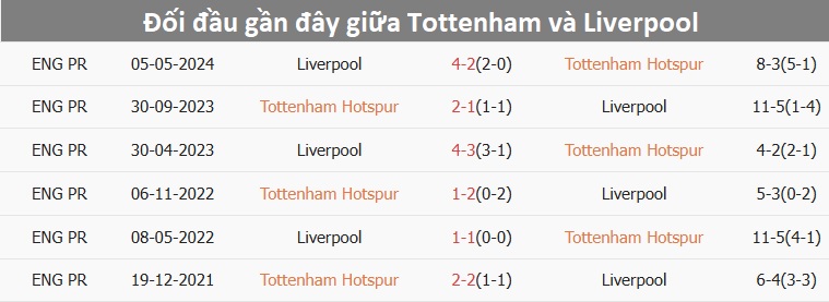 - Đã có hơn 2,5 bàn thắng ở 7/8 trận gần nhất giữa Tottenham và Liverpool trên mọi đấu trường.
