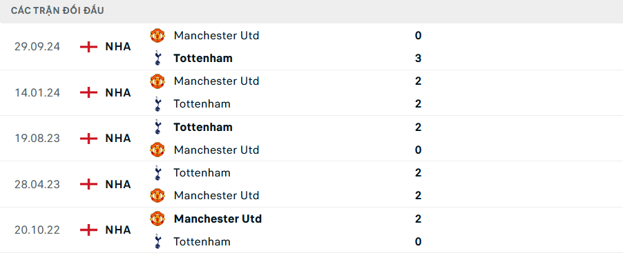 Phong độ và lịch sử đối đầu Tottenham vs MU