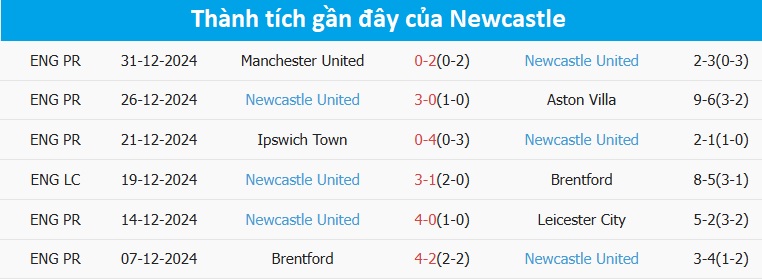 Là một trong hai đội duy nhất giành chiến thắng trong cả bốn trận đấu gần nhất tại Premier League -cùng với hiện tượng Nottingham Forest – Newcastle đã tiếp nối những chiến thắng liên tiếp trước Leicester City, Aston Villa và Ipswich Town bằng chiến thắng dễ dàng nhất mà họ từng có tại Old Trafford.