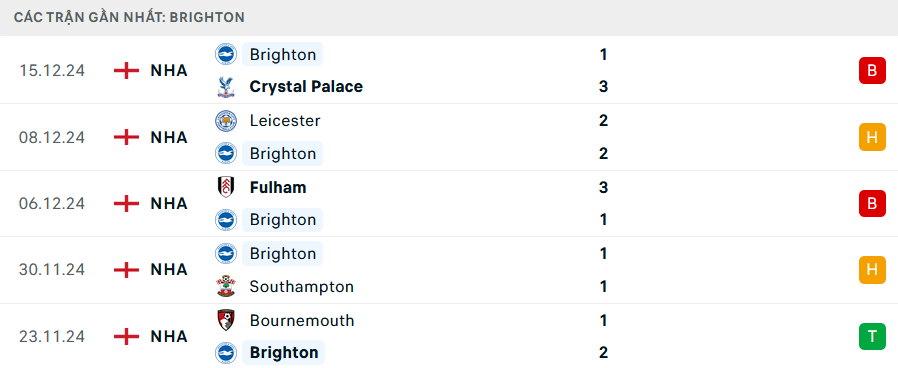 Brighton đang trải qua những ngày tháng khó khăn khi đã không biết đến mùi chiến thắng sau 4 vòng đấu gần nhất. Nhưng đội khách vẫn được đặt niềm tin khi nhìn vào những chiến thắng thuyết phục của họ trước những đội bóng lớn mùa này như Man City, Tottenham và Newcastle.
