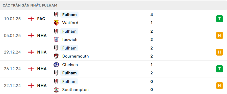 Phía bên kia chiến tuyến, Fulham cũng vẫn đang thể hiện sự khó chịu của mình ở sân chơi cao nhất xứ sở sương mù. Mặc dù vậy, việc để hòa quá nhiều trong những trận gần đây đã khiến thầy trò HLV Marco Silva dần bị các đội bóng xếp trên bỏ xa. Sau 20 vòng đấu, Fulham giành được 30 điểm và đang tạm xếp ở vị trí thứ 9 trên BXH. Cơ hội để chen chân vào top 6 là vẫn còn nếu họ chắt chiu từng điểm số ở nửa sau của mùa giải.