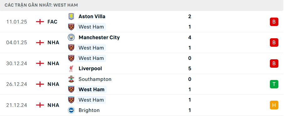Phong độ và lịch sử đối đầu West Ham vs Fulham