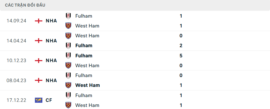 - Từ 3 bàn trở lên: 10 trận gần nhất của Fulham có trung bình 3,3 bàn thắng được ghi. Trong khi đó, 10 trận gần nhất của West Ham cũng có trung bình 3,4 bàn. 9 trận đối đầu gần nhất trên sân của West Ham có trung bình 2,9 bàn thắng xuất hiện.