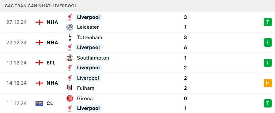 - Liverpool bất bại 13 trận gần đây nhất ở Premier League.