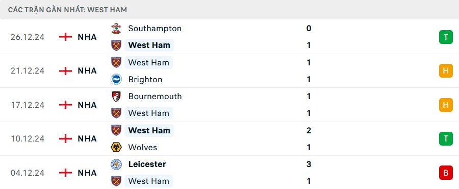 - West Ham bất bại trong 4 trận gần đây nhất ở Premier League.