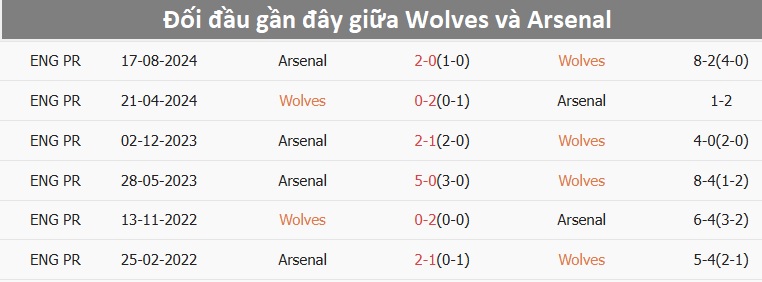 Phong độ và lịch sử đối đầu Wolves vs Arsenal