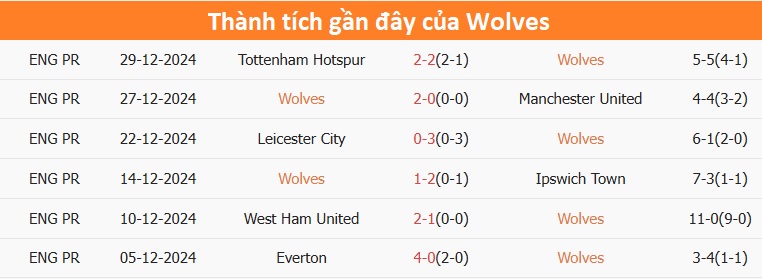 Phong độ và lịch sử đối đầu Wolves vs Nottingham