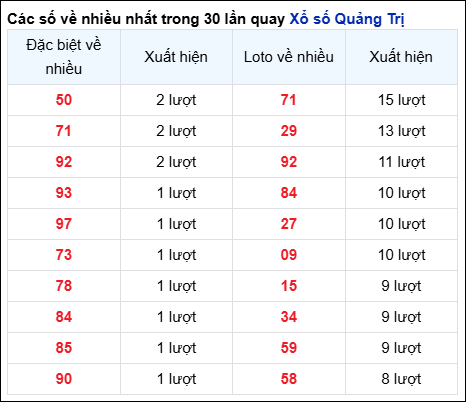 - ⚡ Cặp số về nhiều nhất: 71 – 29 – 92 – 84 – 27